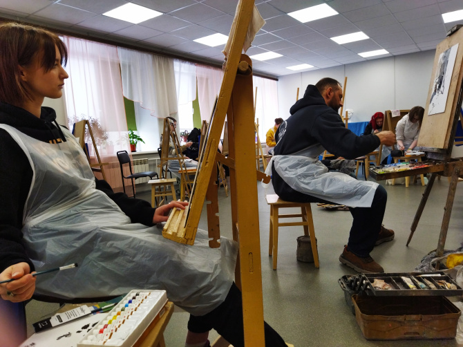 На улицах Ковдора - снег, лёд и пронизывающий ветер, а в художественной школе – буйство красок, творческая атмосфера и открытые окна. Здесь прошли мастер-классы живописцев из Костромы, Москвы и Санкт-Петербурга. Благодаря поддержке правительства Мурманской области, администрации Ковдорского района и компании «ЕвроХим» рудный город посетили заслуженные художники России Николай Буртов, Андрей Захаров, Михаил Салмов и член Союза художников Андрей Селенин.