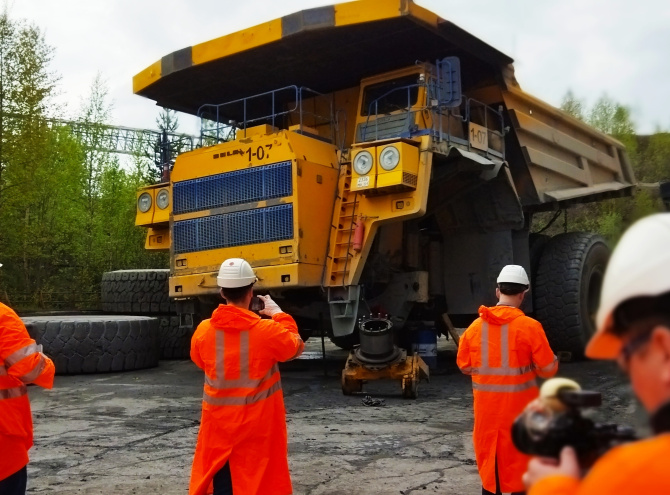 - Просьба не разбегаться! – повторяет Александр Колмаков, сотрудник ГОК и наш сопровождающий. – За ограждение не заходите, оно не зря установлено. Механизмы большие, породы тяжёлые, лечение дорогое. Часто бесполезное.