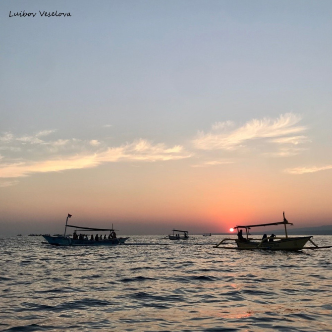 Это все напомнило мне фотоохоту на дельфинов в Балийском море. Только там туристов сажают на небольшие узкие лодочки с батанганами (выносными опорами), отчего лодочки напоминают водомерок, мирно скользящих по водной глади. И все бы ничего, но шум моторов такой сильный, что дельфины реально удирают от надоедливых туристов, а те гоняются за ними, пока не взойдет солнце.