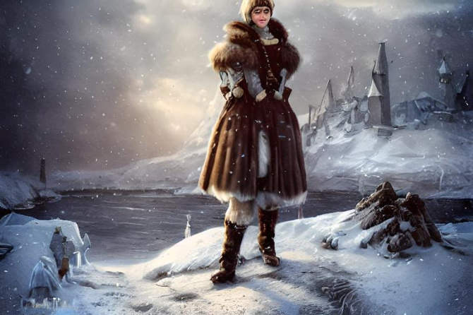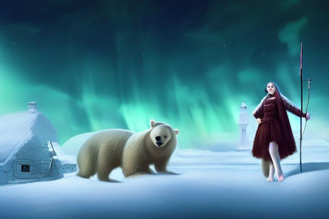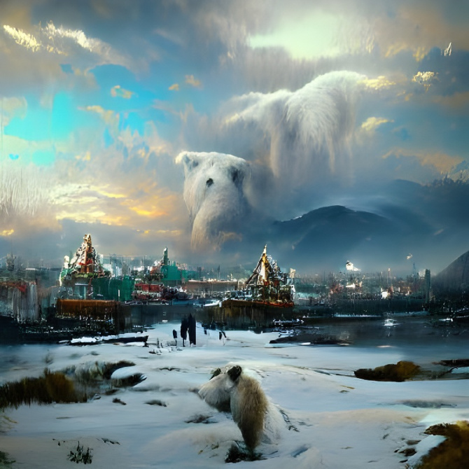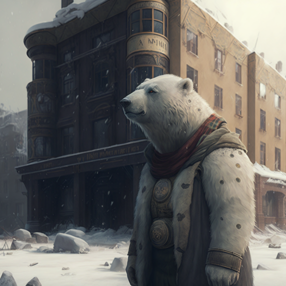 [Murmansk city, Arctic, snow, polar bear, portrait, beautiful, elegant, atmospheric, artstation, cute, cinematic, fantasy, concept art, a sense of awe, detailed landscape painting by Ivan Shishkin, steampunk, vintage, magical, young, warrior]