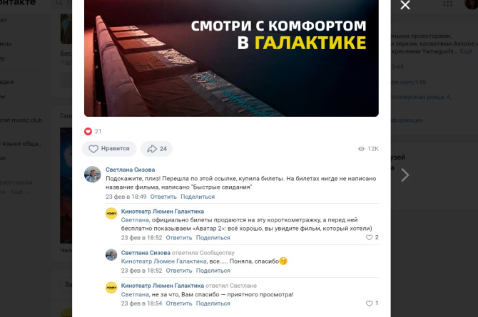 В большинстве кинотеатров по всей стране долгожданный фантастический фильм режиссёра и сценариста Джеймса Кэмерона идет «под псевдонимом». Так, в одном из мурманских кинотеатров билеты продают на короткометражку «Быстрые свидания». У зрителей возникают вопросы.