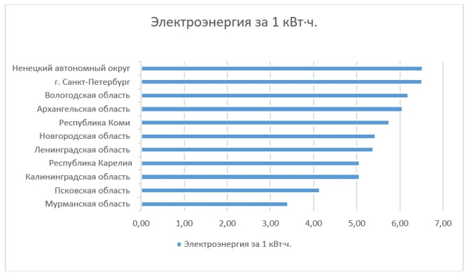 Самое дорогое электричество в Ненецком автономном округе – 6,53 руб./киловатт-час.
