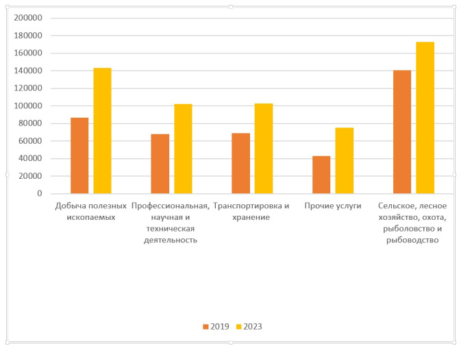 Предоставление прочих видов услуг +32 302,8 рубля. Здесь зарплата выросла до 75 348,2 рублей.