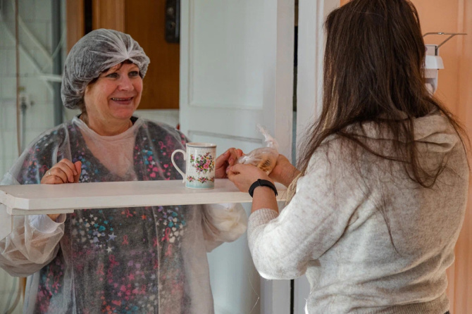 «В процедурном кабинете мы берем анализы у доноров, если они сегодня не сдают донацию, но нам нужно их обследовать. Например, повторно проверить на гемотрансмиссивные инфекции, такие как ВИЧ, гепатиты В и С, а также сифилис. Или если доноры хотят стать донорами костного мозга, мы также здесь берем пробирки в процедурном. -– рассказывает Наталия Александровна. – В буфете выдается порция – сушки, чай и сахар. Донору желательно выпить хотя бы воды перед процедурой, чтобы в организме был дополнительный объем жидкости, который он компенсирует из кишечника, когда донор сдаст кровь. Так человек быстрее восстановится и меньше вероятности падения в обморок, падения уровня сахара и других легких недомоганий: головокружения, слабости, помутнения. Рядом с буфетом – комната ожидания. Отсюда отправляются непосредственно в операционную».