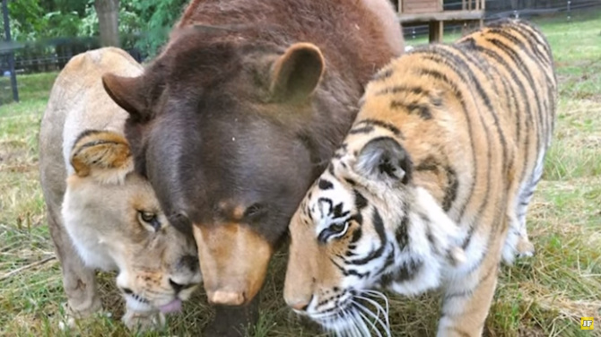 Друг познается в беде. Самый яркий пример этой пословицы дружба между львом Лео, тигром Шерханом и медведем Балу. Необычную троицу спасли полицейские Атланты из дома наркобарона в 2001 году. Смотрители заповедника не стали разлучать друзей, которые показывали явные признаки беспокойства и тоски, когда их разлучили, чтобы оказать необходимую ветеринарную помощь.