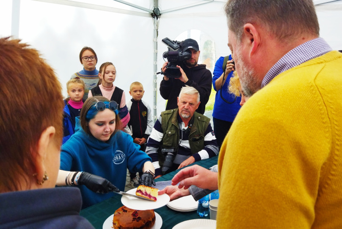Но вердикта столичного гостя пришлось подождать. «Мы посоветуемся», -пообещал шеф-повар. После того, как он снял пробу с кулинарных шедевров, хозяйки раздали пироги всем желающим, а желающих было не то, что много, а очень много. Желающие с бумажными тарелками – организаторы позаботились – томились ещё с момента выноса пирогов на конкурсный стол.