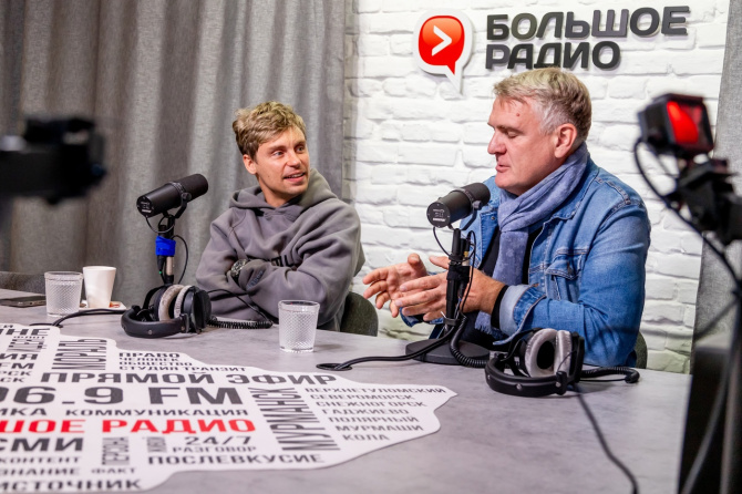 Студию Большого Радио посетили актеры спектакля «Без границ» - российский актер Александр Головин, известный по роли Максима Макарова в сериале «Кадетство» и Сергей Пиоро, звезда сериалов «След» и «Универ. Новая общага».