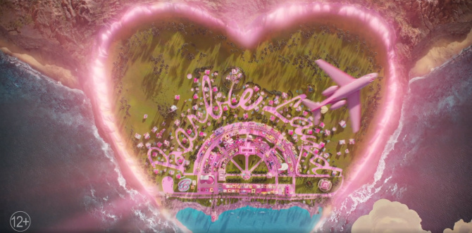 Он начинается картинкой из розового рая, где на цыпочках ходят Барби, принимают душ без воды, пьют чай без чая, едят вафли и спускаются со вторых этажей своих розовых домиков с помощью горки или просто перелетев на тротуар. Тут же в этом мире обитают Кены, у которых нет своего жилья, они проводят все время на пляже и живут только тогда, когда на них обращают внимание их Барби.