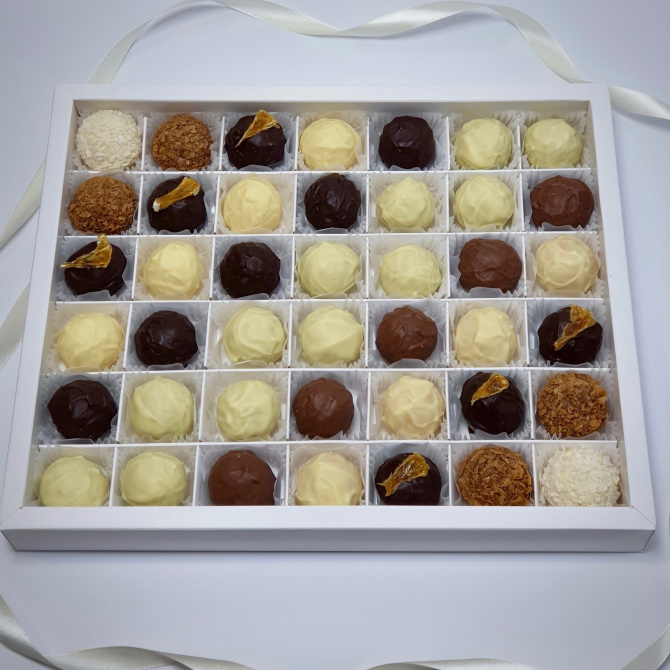 Начинка – главная составляющая. В основе начинки, кроме шоколада, в зависимости от рецепта, сливки, фруктовое пюре или сок, орехи, сливочное масло, иными словами – какая-либо сложная начинка, которая покрыта шоколадом. И когда вы откусываете трюфель, то наслаждаетесь сочетанием тех или иных ингредиентов в сочетании с шоколадом.