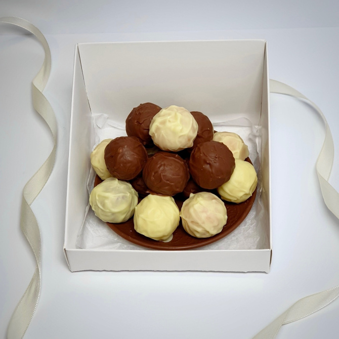 Делала в основном для родных и на праздники, а потом вышла в декрет и поняла, что хочу найти что-то такое... потому что тортоделок очень много, а хотелось такого, чего нет у других. И однажды нашла рекламу трюфелей, где предлагали пройти обучение и освоить шоколадное дело. Стало очень интересно и, изучив курс, решила «Мне это надо, хочу!». Вот так познакомилась с миром шоколада и с трюфелями.