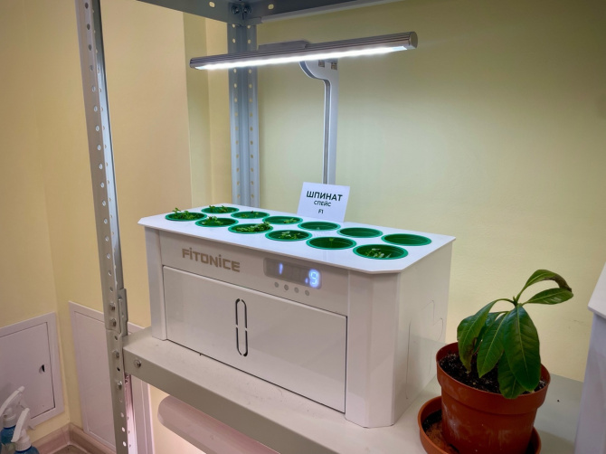 Изюминка Зёленой библиотеки – фитолаборатория. Здесь можно вырастить микрозелень в гидропонных установках и фитошкафах, также заглянуть в строение клеток с помощью новейшего микроскопа. Как выглядят клетки кожи лягушки, крылья стрекозы или клетки ананаса - все это можно своими глазами увидеть в фитолаборатории.