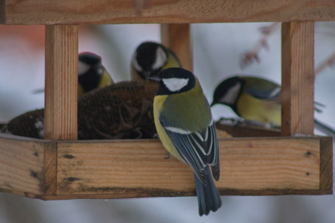 Синицы всем знакомы с детства. Осенью у них начинаются кочевки, и в поисках корма стайки этих птиц перемещаются ближе к человеческому жилью. Доверчивость и любознательность позволяет им воспользоваться помощью людей. Синицы насекомоядные, но зимой вынужденно переходят на растительную пищу. Тем не менее, животная пища обязательна в их рационе, и они, даже питаясь на кормушке, продолжают обследовать всё вокруг в поисках насекомых, тем самым освобождая сады и парки от вредителей.