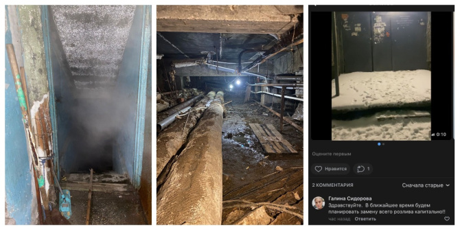 На деле ситуация иная: да, но нет. По информации инициативной группы жильцов, свои сети отремонтировал только Мурманэнергосбыт. Однако наибольшую проблему представляют именно сети, за которые отвечает управляющая компания. Так что долгожданных перемен в подвале дома №11/1 по пр. Героев-североморцев не случилось. В подвале по-прежнему плещется канализация, клубится пар, бегают грызуны, вьются насекомые… Стойкий запах и повышенная влажность ощущаются в квартирах второго этажа, комара долетают даже до третьего этажа. Тем временем директор «Севжилсервиса» Галина Сидорова спокойно отвечает в общедомовом чате жильцам: «В ближайшее время будем планировать замену всего розлива капитально».