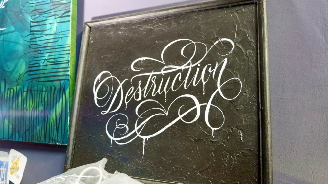 — Так как каллиграфия – это работа со словами, текстом, то всегда встает вопрос, что писать. Большую часть времени, что я занимаюсь каллиграфией, я писал различные цитаты, в основном из музыки и книг, и только в последний год начал писать какие-то свои мысли. Стараюсь работать в этом направлении. Ну и вдохновляет музыка, люди, общение с ними.