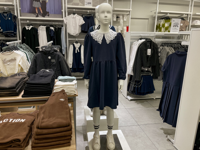 — Сразу скажу, что долговечная, наверное, она и не нужна, потому что дети растут быстро. Наша задача, чтобы школьную форму хватило на сезон либо на полсезона. Почему на полсезона? Потому что очень часто после нового года родители приходят к нам за обновлением школьного ассортимента, потому что их дети выросли. Чаще всего берут заново брюки, потому что они становятся короткими. Чуть меньше берут блузки и рубашки.