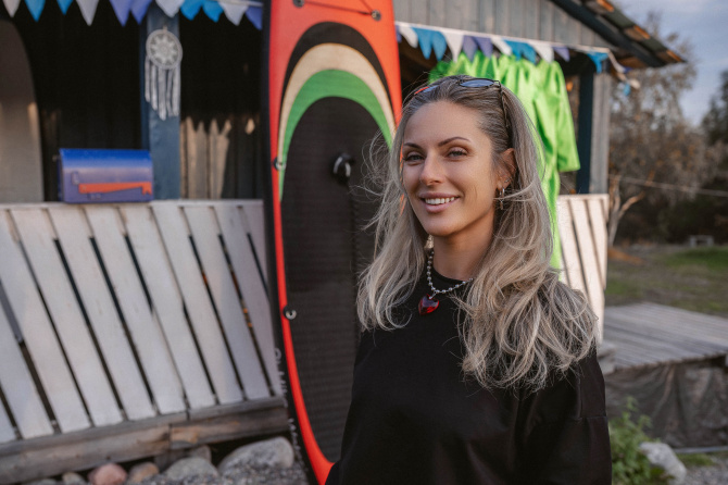 Что касается серфинга, преподавательской деятельности я училась у тренера сборной России Педро Барбуда. Я тренер-преподаватель по серфингу, имею квалификацию. Всю базу заимствовала у него, а также у катающихся серферов, которые делились своими навыками и наработками. Изначально меня учил наш местный парень, учредитель Федерации Александр Коновалов. Он и порекомендовал мне отправиться на учебу к Педро.