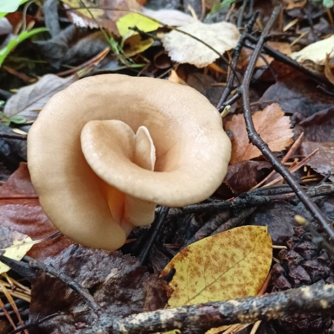 Эти грибы имеют воронкообразные шляпки от бледных до коричневых оттенков с нисходящими пластинками и считаются съедобными. Вешенки встречаются вблизи гниющей древесины, которой питается.