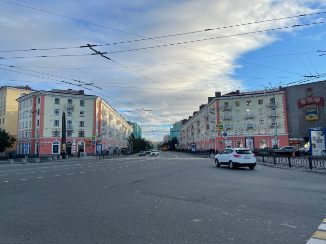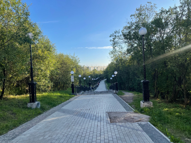 Проспект Героев-Североморцев плавно переходит в улицу Челюскинцев, а мы продолжаем наш спуск в центральную часть заполярной столицы. Будьте осторожны на лестницах, некоторые из них требуют ремонта.