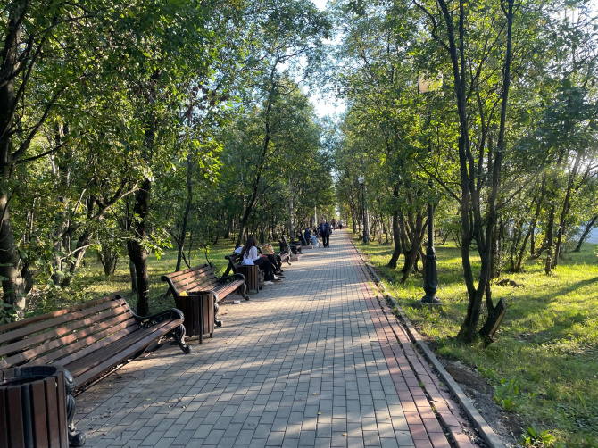 Налюбовавшись, можно передохнуть на Театральном бульваре, так как впереди затяжной подъем.