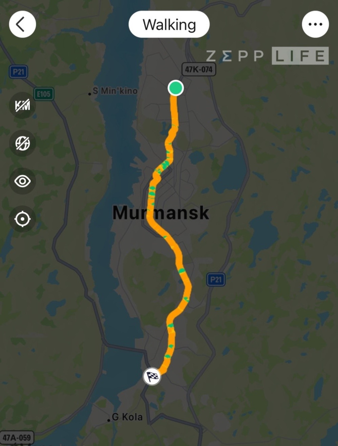 В честь 108-летия города мы прошли от стелы до стелы, чтобы «прочувствовать» Мурманск. Маршрут в 15 километров 200 метров занял 56 песен, 20 558 шагов и 3 часа 14 минут.