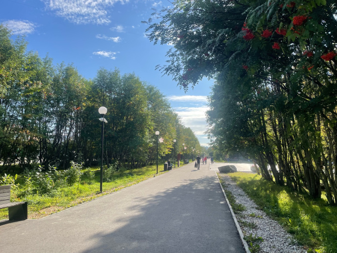 После «Северного Нагорного» идти станет полегче, зеленых островков станет больше, впереди вас ждет аллея Памяти перед Драматическим театром Северного Флота, а также приятный сквер на пересечении Кольского проспекта и улицы Копытова.