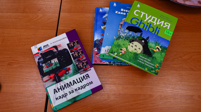 А пока цифровизации на должном уровне нет, мультфильмы ребята создают по старинке: лепят пластилиновых героев, рисуют задники, читают специализированную литературу: здесь и секреты студии Ghibli и Хаяо Миядзаки, и «Королевы анимации Disney», и «Анимация кадр за кадром» Александра Альтендорфера. Все, чтобы прикоснуться к удивительному миру, в котором возможно всё.