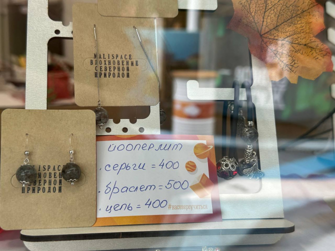Несколько ларьков изобилуют различными сувенирами, в том числе, ручной работы. Цены, что называется, не ломовые – серьги с натуральным камнем йооперлитом стоят 400 рублей, а браслет – 500, подвеску с изображением северного сияния можно приобрести за 400 рублей.