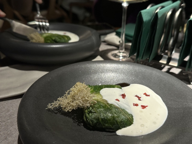 Одно из фирменных блюд – форшмак от Любетко. Рецепт передается в семье от поколения к поколению, о нём автор проекта писал в своих социальных сетях еще задолго до открытия. Нетипичное на первый взгляд сочетание сельди и яблока оказалось свежим и ярким. С «первой вилочки» влюбил в себя тартар из оленины. Еще одно блюдо, которое я не могу не отметить, - голубцы из оленины с грибным даси и копченой сметаной. Это настоящий «взрыв вкуса», при этом яркие вкусы не перебивают, а только дополняют друг друга.