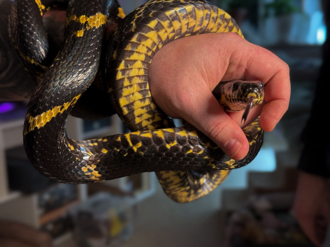 А полоз, оказавшись в руках журналиста, принял его за жертву и попытался добавить в свой рацион.