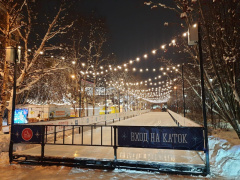 На улице Воровского в Мурманске с 11:00 до 19:00 часов работает каток. Вход со своими коньками бесплатный.