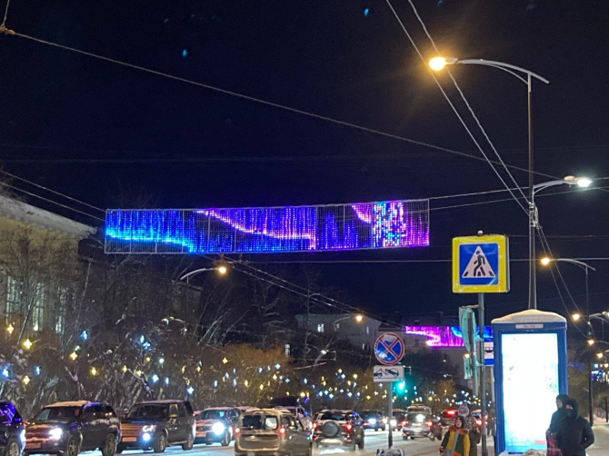1 декабря установили на проспекте Ленина новые световые конструкции, и вот уже второго декабря одна из их «дала сбой». Тогда в Министерстве пояснили сбой пуско-наладочным процессом. Напомним, что с 1 по 5 декабря растяжки работали в тестовом режиме.