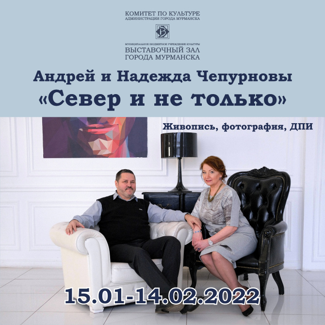 Выставочный зал города Мурманска приглашает северян 15 января, в субботу, на торжественное открытие выставки живописи, фотографии и декоративно-прикладного искусства Андрея и Надежды Чепурновых «Север и не только».