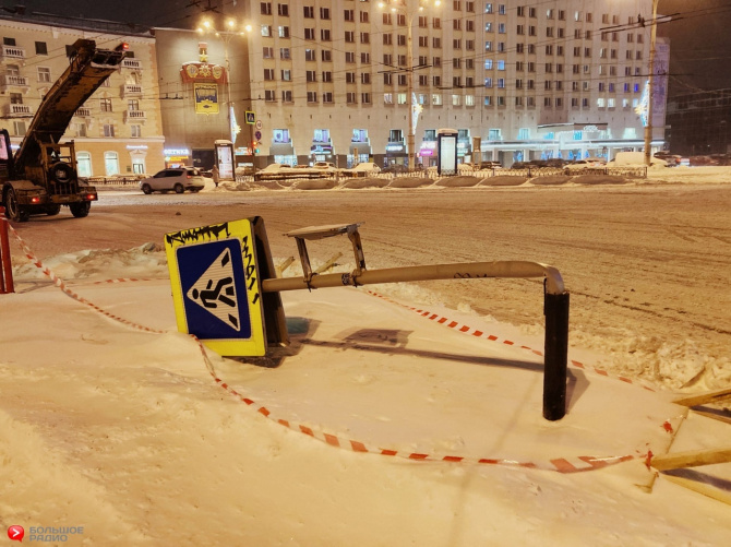 В редакцию Большого Радио поступают сообщения о согнутых и оторванных знаках дорожного движения. Так, например, пострадал знак пешеходного перехода на площади Пять Углов. Сообщается также, что на Коминтерна, 15 практически оторвало железный лист с крыши дома.