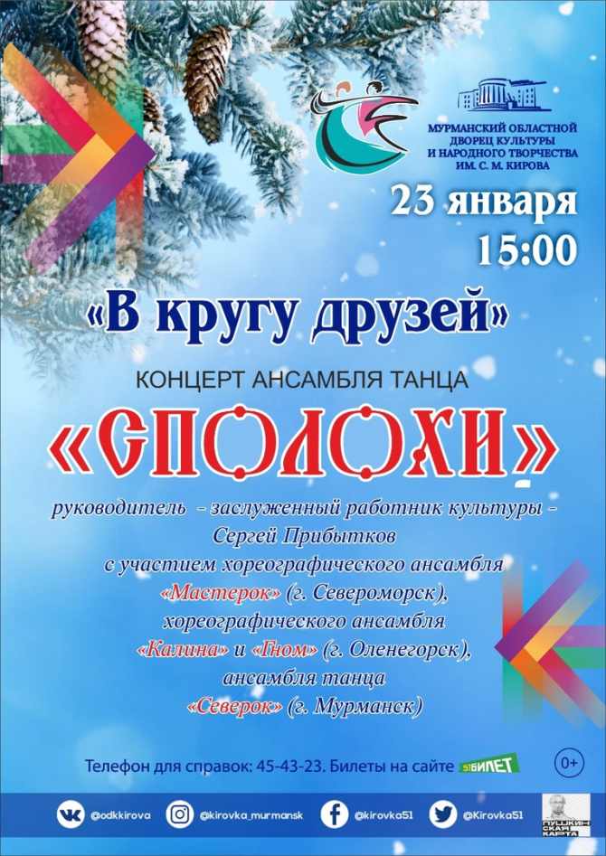 Мурманский областной Дворец культуры и народного творчества им. С.М. Кирова пройдёт традиционный январский концерт коллектива «Сполохи» «В кругу друзей».