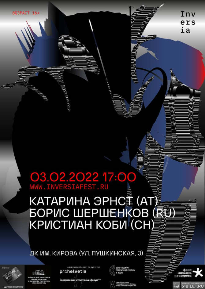 В рамках фестиваля «Инверсия» 3 февраля в 17:00 мурманчане и гости города услышат совместный электроакустический концерт австрийской художницы и перкуссионистки Катарины Эрнст, дуэта звуковых художников Кристиана Коби из Швейцарии и Бориса Шершенкова из России.