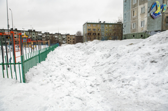 В связи с обильными снегопадами в областном центре и других муниципалитетах региона возникли проблемы с уборкой дворов и дорог. И, если данную ситуацию удалось взять под контроль, то насчет качества уборки детских игровых и спортивных объектов, которые находятся в управлении МАУ ГСЦ «Авангард», у местных жителей остались нарекания. Одной из таких территорий стала площадка, расположенная на улице Аскольдовцев в Мурманске.