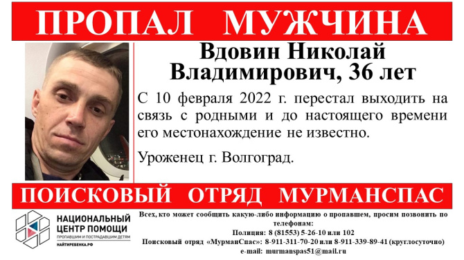 36-летний Николай Вдовин перестал выходить на связь 10 февраля 2022 года. До настоящего времени его местонахождение неизвестно.
