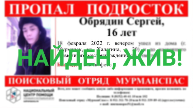 Напомним, 16-летний Сергей Обрядин ушел из дома по улице Халатина, 20 вечером 18 февраля. После этого его местонахождение известно не было.
