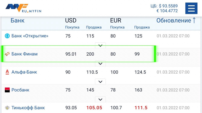 - USD: покупка - 83,5485 ₽; продажа - 93,5589 ₽;