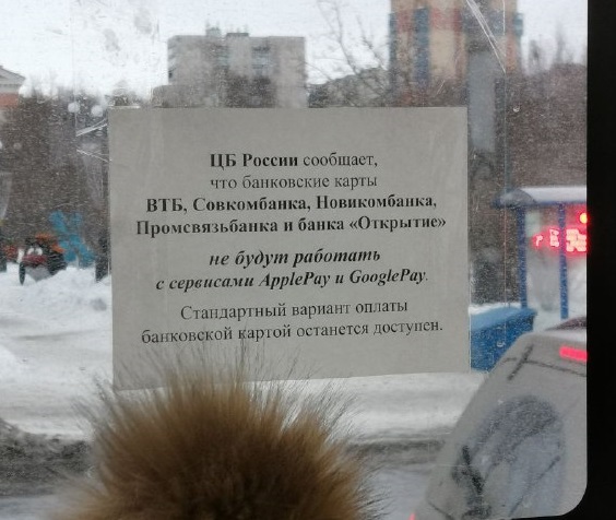 Северяне столкнулись с проблемой оплаты проезда бесконтактным способом. Во всех троллейбусах и автобусах АО «Электротранспорт» висят объявления, предупреждающие, что ряд банков не работает в системах ApplePay и GooglePay. При этом бесконтактная оплата непосредственно картами проходит.