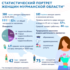 По последним имеющимся данным, в Мурманской области проживает 380 тысяч северянок, что составляет …