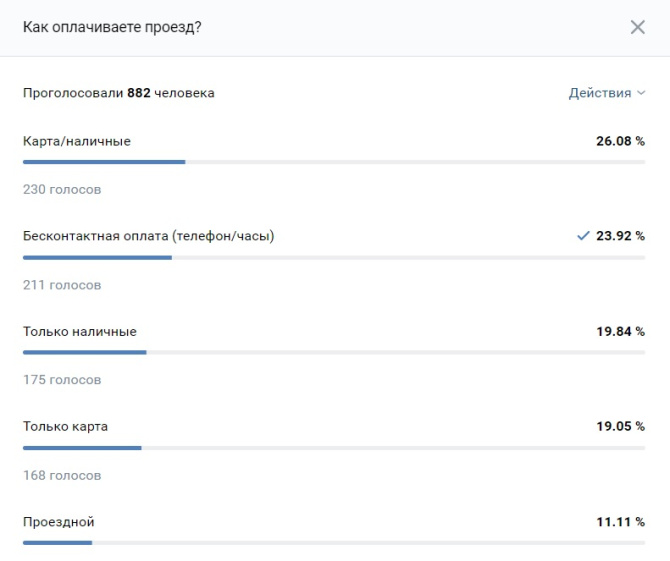 Согласно анонимному опросу, проведенному в одном из сообществ в ВК, большинство мурманчан предпочитает расплачиваться в транспорте картой или наличными – 26,08%. При этом 23,92% пользовались бесконтактной оплатой, а 19,84% – только наличными. 19,05% же платили за проезд картой, а 11,11% передвигались по городу благодаря проездному билету.