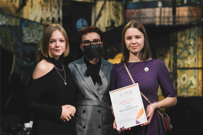 Анастасия Кабакова и Алёна Челпановская получили дипломы победителей и памятные подарки на гала-показе в Москве. Анастасия стала победителем в номинации «Атомный фотограф», а Алена - в номинации «Авторская вышивка». Одежда, представленная на гала-показе, была создана по эскизам юных дизайнеров из городов присутствия АЭС России и Беларуси.
