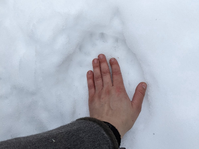 В районе Порьей губы были замечены следы медведя. Как рассказали в группе «ФГБУ Кандалакшский природный заповедник» ВК, обнаружил их любитель активного отдыха Владимир Седнев, который двигался на снегоходе от Умбы.