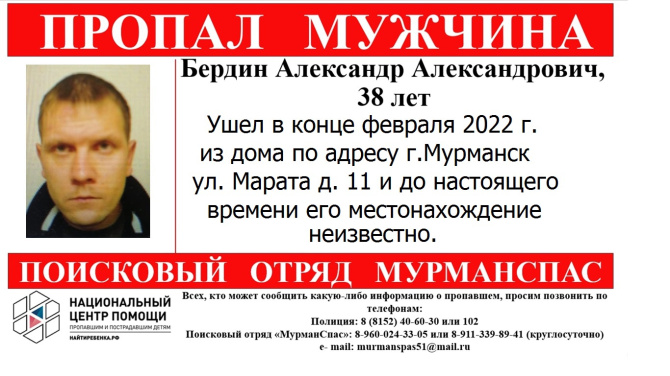 38-летний Александр Бердин ушел из дома по адресу: улица Марата, 11 в конце февраля.