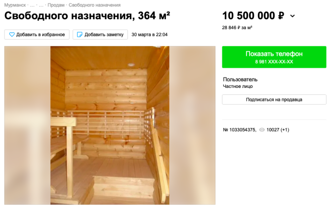 В Териберке на одном из популярных сайтов объявлений продают сауну за 10 млн рублей.