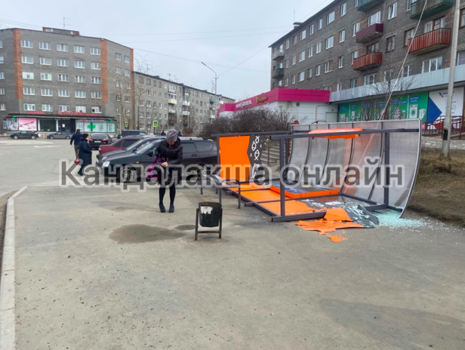 В центре Кандалакши упал остановочный комплекс, сообщается в группе «ВКонтакте» «Кандалакша онлайн».