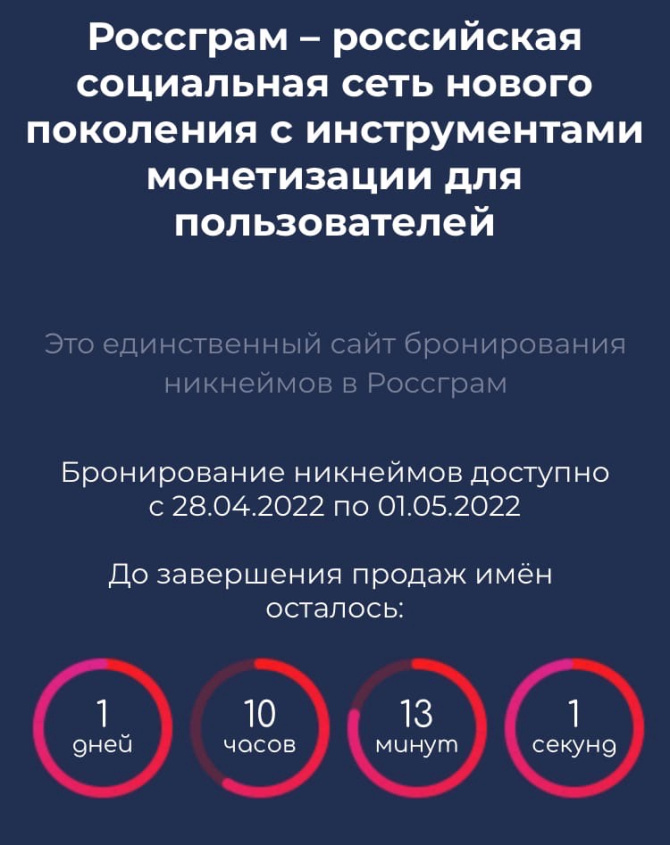 Разработчики российской социальной сети «Россграм» запустили бронирование никнеймов. Примечательно, что такая услуга обойдется будущим пользователям в 10 тысяч рублей.