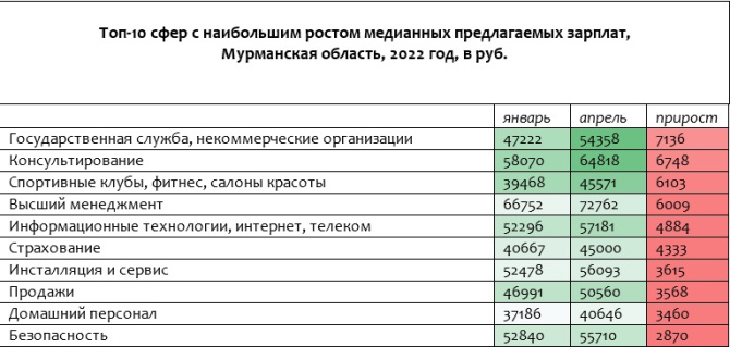 Отмечается, что с начала года сильнее всего выросла зарплата в вакансиях для госслужащих – более чем на 7 000 рублей. На втором месте по приросту зарплат стоит сфера «Консультирование» – прирост более чем на 6 700 рублей. А в спортивной сфере работодатели повысили предложения более чем на 6 000 рублей. Также в топ-10 по максимальному росту зарплат с начала года вошли сфера «Высший менеджмент», ИТ-сфера, страхование.
