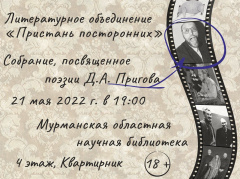 Литературное объединение «Пристань посторонних» приглашает мурманчан на новую открытую встречу. Она посвящена по…
